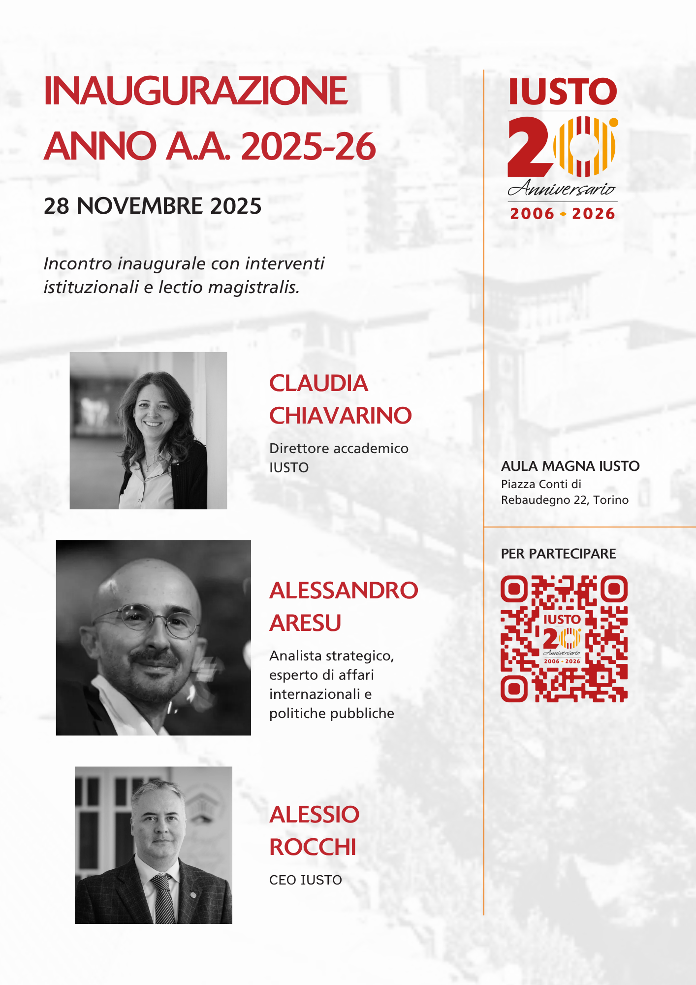 Venerdì 28 novembre 2025, l’Istituto Universitario Salesiano Torino Rebaudengo (IUSTO) inaugura ufficialmente il nuovo anno accademico 2025-2026 con un incontro istituzionale e una lectio magistralis.