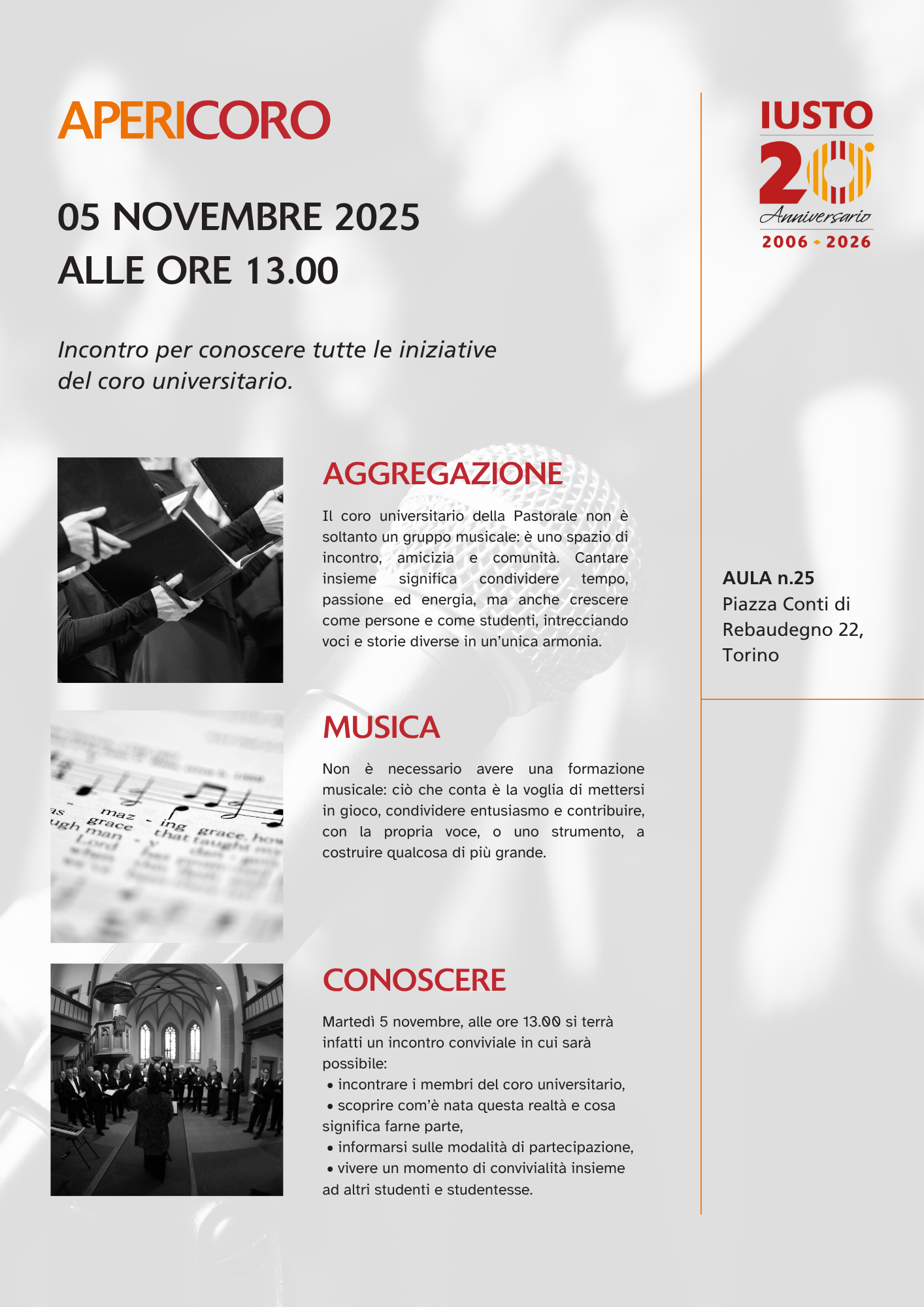 Il coro universitario della Pastorale è molto più di un gruppo musicale: è un luogo di incontro, amicizia e comunità. Cantare insieme significa condividere tempo, energia e passione, ma anche crescere come persone e studenti, intrecciando voci e storie in un’unica armonia.